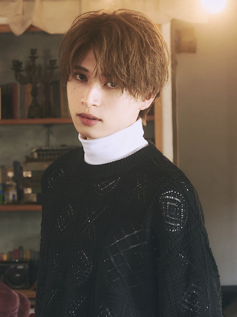 前髪長めのマッシュウルフをベースに束感が出やすいようにセニングカットをしていきます。