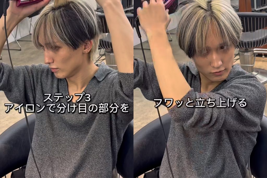 アイロンで分け目の部分をフワっと立ち上げる