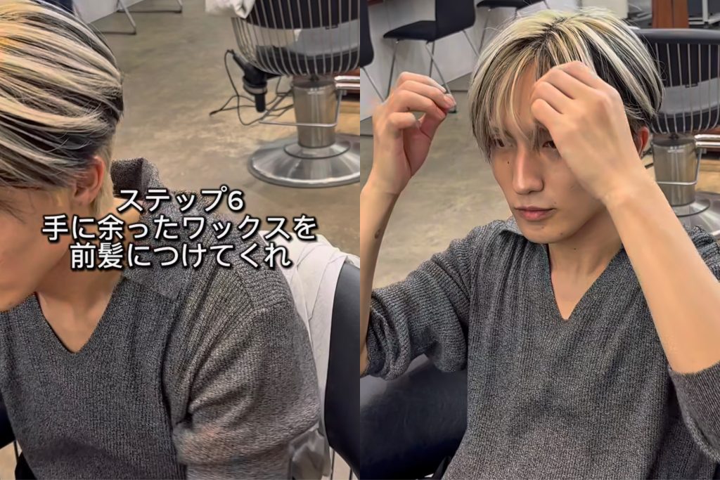 手に余ったワックスを前髪につける